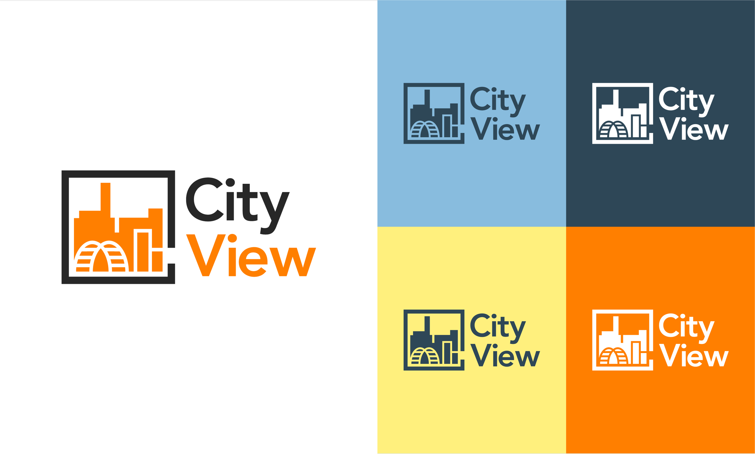 CityView is a redesigned logo that represents a window overlooking a modern and sleek landscape reflecting opportunity, and the orange silhouette reinforces the idea of a modern and efficient space for businesses.